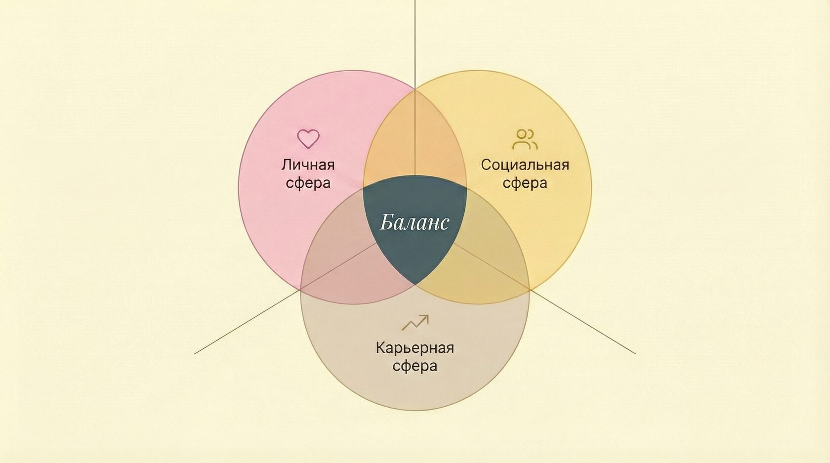 Здесь мне близок подход эксперта по нейропсихологии Екатерины Лингольд, которая при целеполагании все цели предлагает условно разделить на три сферы: личную, социальную и карьерную.